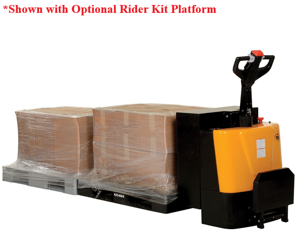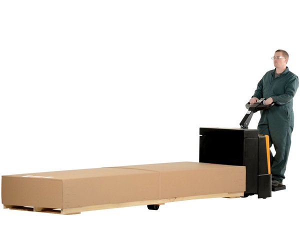 This 8 foot electric pallet truck is used to lift and transport long or oversized palletized loads in warehouses, distribution centers, and industrial facilities. Operators position the extended forks under the pallet, lift using the electric system, and move the load safely to storage, staging, or shipping areas. Controlled lowering ensures precise and secure placement of the load.