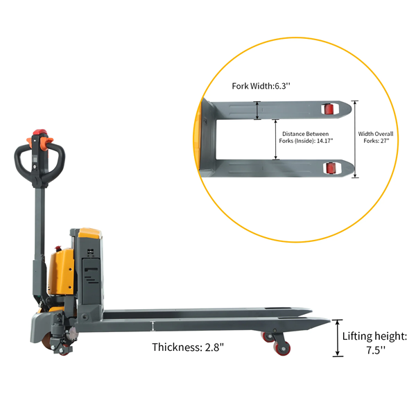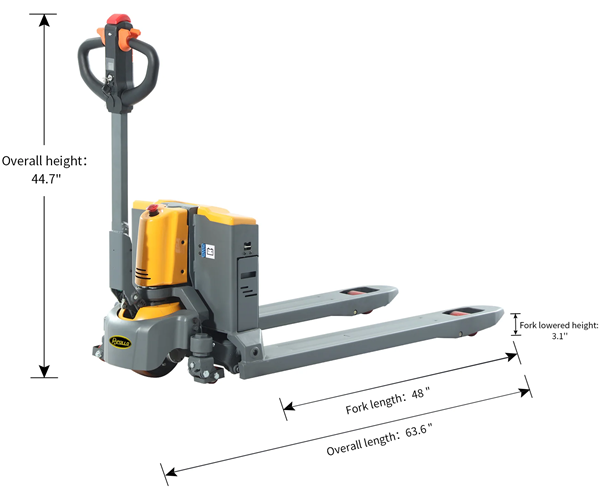 This fully electric walkie pallet truck 3300 lb with lithium-ion batteries is the perfect solution for businesses seeking a dependable, cost-effective, and high-performance electric pallet handling tool.