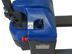 Compact and highly maneuverable, this semi-electric pallet jack works well in tight aisles, stockrooms, loading docks, and confined storage areas where space and precision are important.