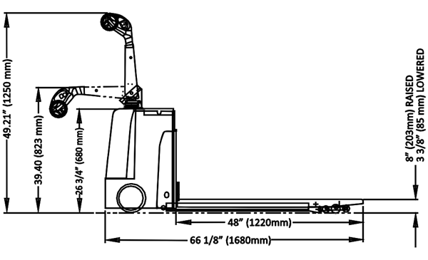 Fully electric drive and lift functions provide smooth travel, precise lifting, and controlled lowering for safe handling of palletized goods. The integrated scale delivers real-time weight readings, streamlining shipping verification, inventory control, and order accuracy without the need for separate weighing equipment.
